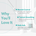 - Formulated with Salicylic Acid to clear clogged pores and control sebum.