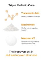 • Formulated with Tranexamic Acid, Niacinamide and Melazero V2 that help prevent production of excessive melanin to prevent the appearance of dark spots.