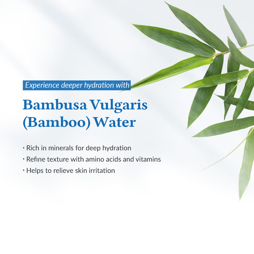 Formulated with 70% Bambusa Vulgaris (Bamboo) Water for deep hydration, enriched with 10,000 ppm Panthenol to boost long-lasting moisture.